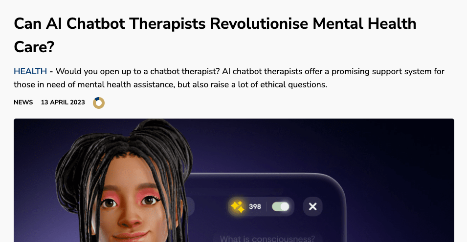 Mental health apps have shown that they can help individuals dealing with common mental health challenges, such as depression, stress, anxiety, or grief, and also help you deal with day-to-day problems like insomnia, lack of focus, and procrastination. The debate surrounding the efficacy and ethics of integrating AI technology into these digital tools continues as newer research emerges.