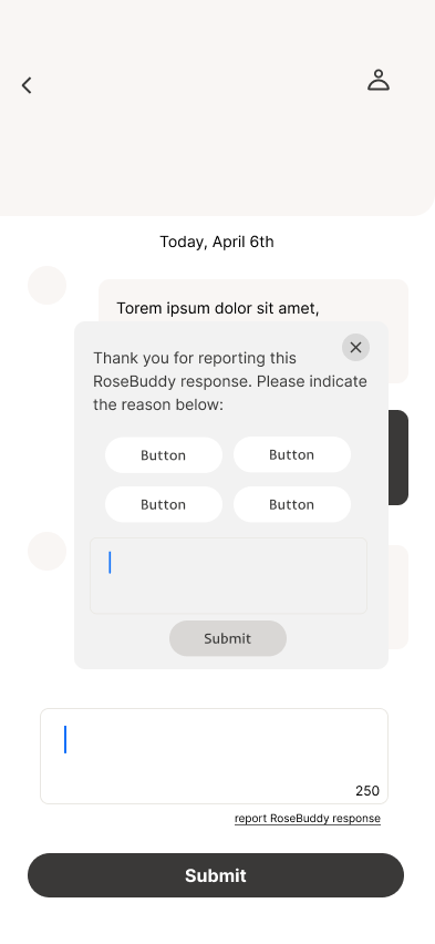 With the recent increase in AI technology efficacy and interest, we felt the solution for increasing people’s exposure and consistency in this technique would be to integrate a chatbot that provided prompts and responses for each step and entry. We believe this will create a more engaging user experience that would target the habit formation loop, provide instant reinforcement, and be more fun for individuals interested in starting or maintaining a journaling practice.